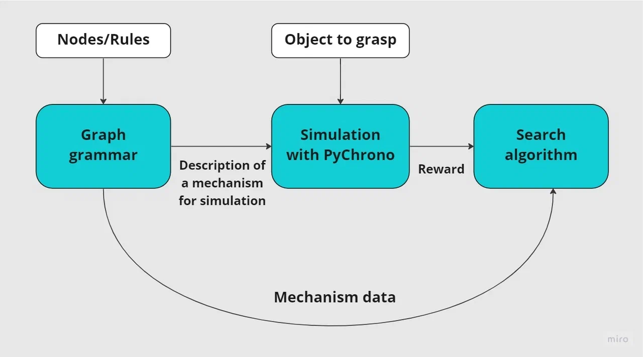 Предназначена для генеративного дизайна мехатронных и робототехнических систем различного назначения. Реализует алгоритм автоматического проектирования, включая исходное описание механизма в виде графа, задание внешней среды, моделирование сгенерированных механизмов и поиска наилучшего возможного дизайна.